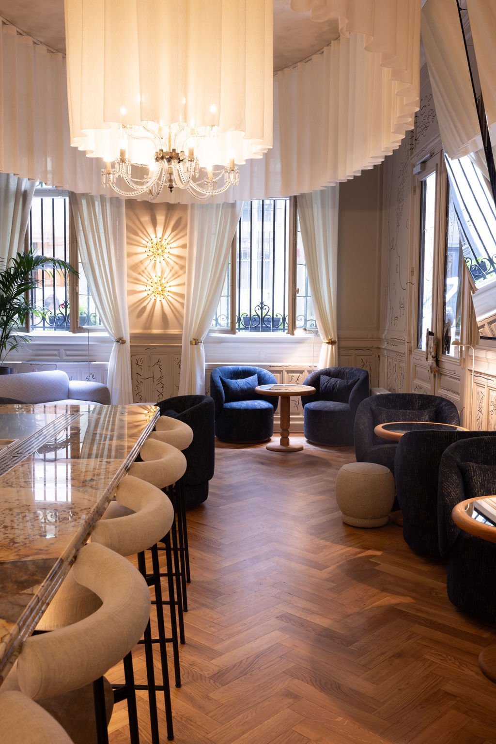 Meet in the cozy setting of the cocktail bar at our Grand Hôtel Français in Bordeaux. Intimate and modern, refined and comforting. In the heart of Bordeaux's city center, just a few steps from the Saint-André Cathedral, take a break. Discover the great vintages of our spirits, let yourself be carried away by the unique experience of a personalized cocktail or the aromas of a perfectly executed classic. The Bar Casa by Ginto is a bar concept where the art of mixology blends with an elegant and intimate atmosphere.